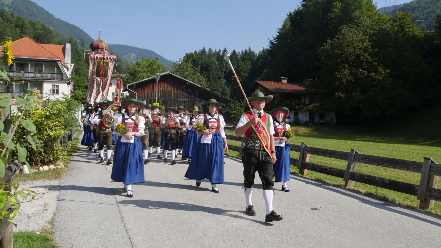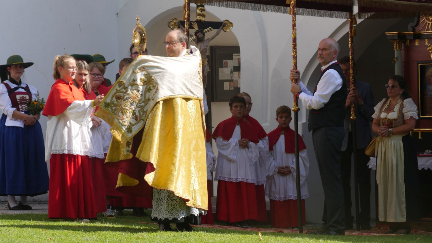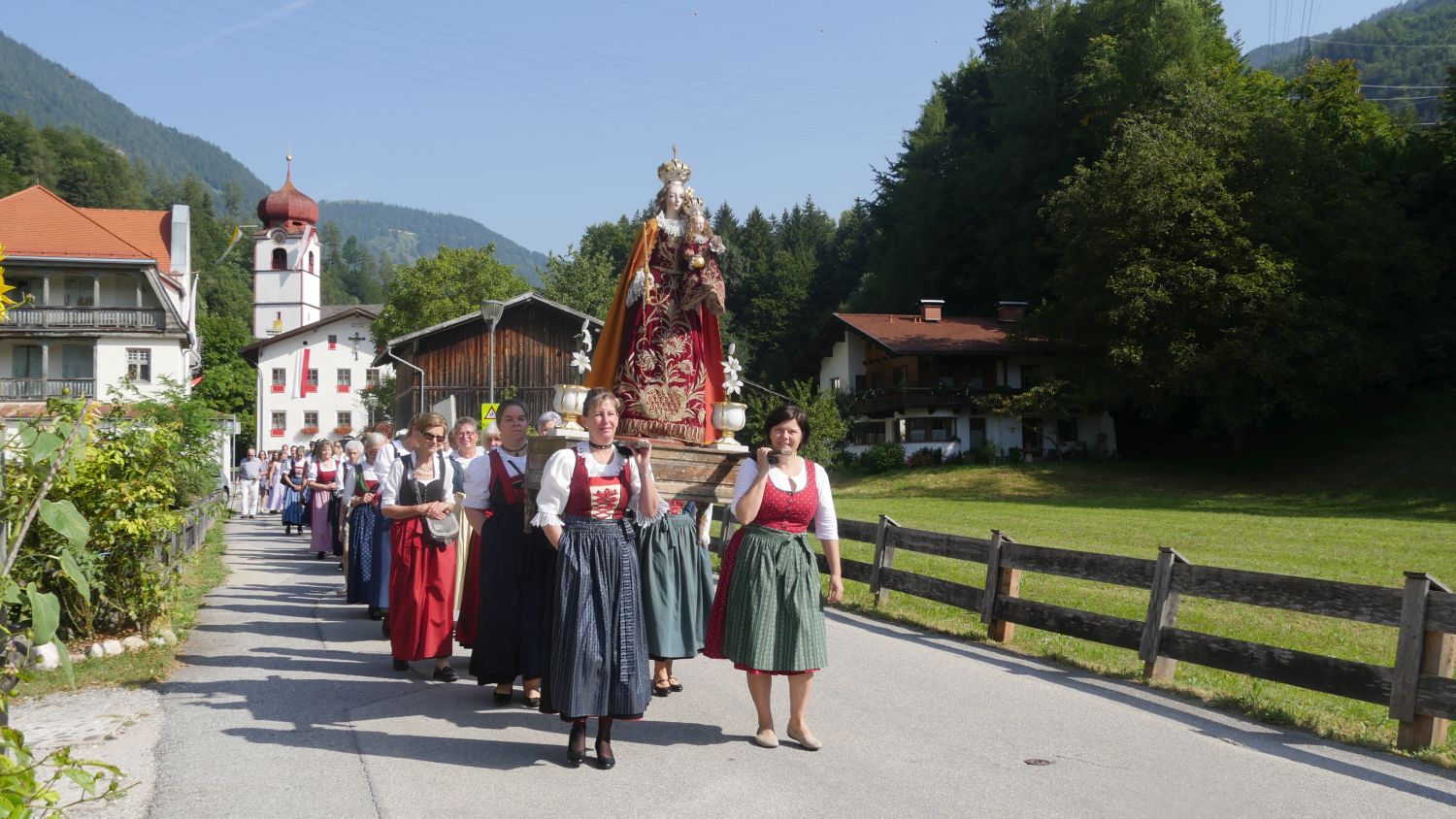 Am 15. August wurde in Mariathal das Hochfest Mariä Himmelfahrt mit der traditionellen Prozession feierlich begangen. Bei herrlichem Sommerwetter versammelten sich zahlreiche Gläubige und Traditionsvereine, um gemeinsam diesen besonderen Tag zu würdigen. Mit dabei waren auch die örtlichen Schützen, der Gesangsverein sowie die Kasettelfrauen, die in ihrer festlichen Tracht farbenfrohe Akzente setzten. Die Schützen begleiteten nicht nur den Zug, sondern erwiesen – wie seit vielen Jahren – mit kräftigen Ehrensalven Gott die Ehre. Für die musikalische Gestaltung sorgte die Bundesmusikkapelle Mariathal, deren festliche Weisen die Feierlichkeiten stimmungsvoll untermalten.