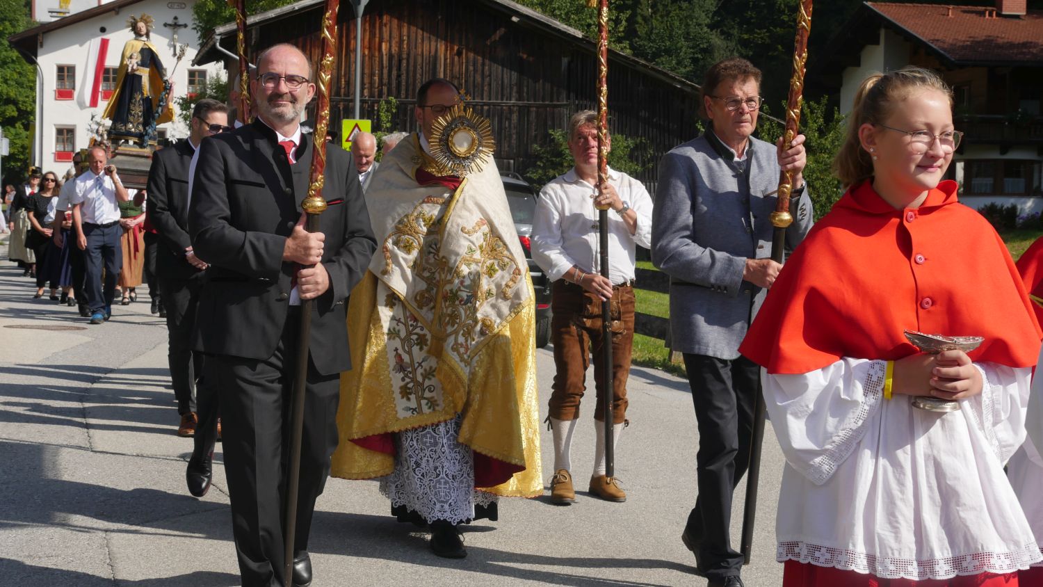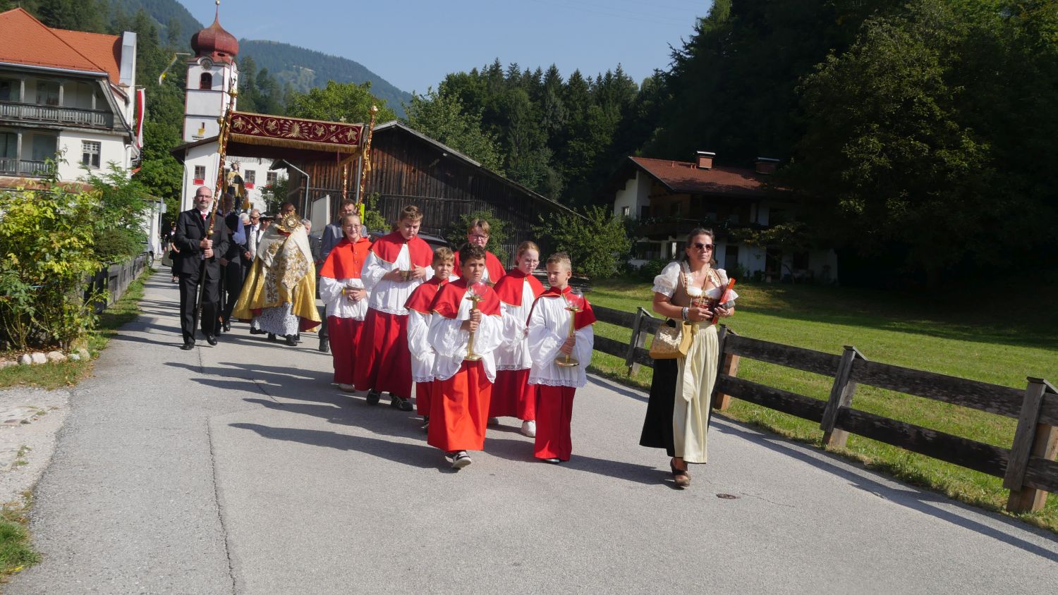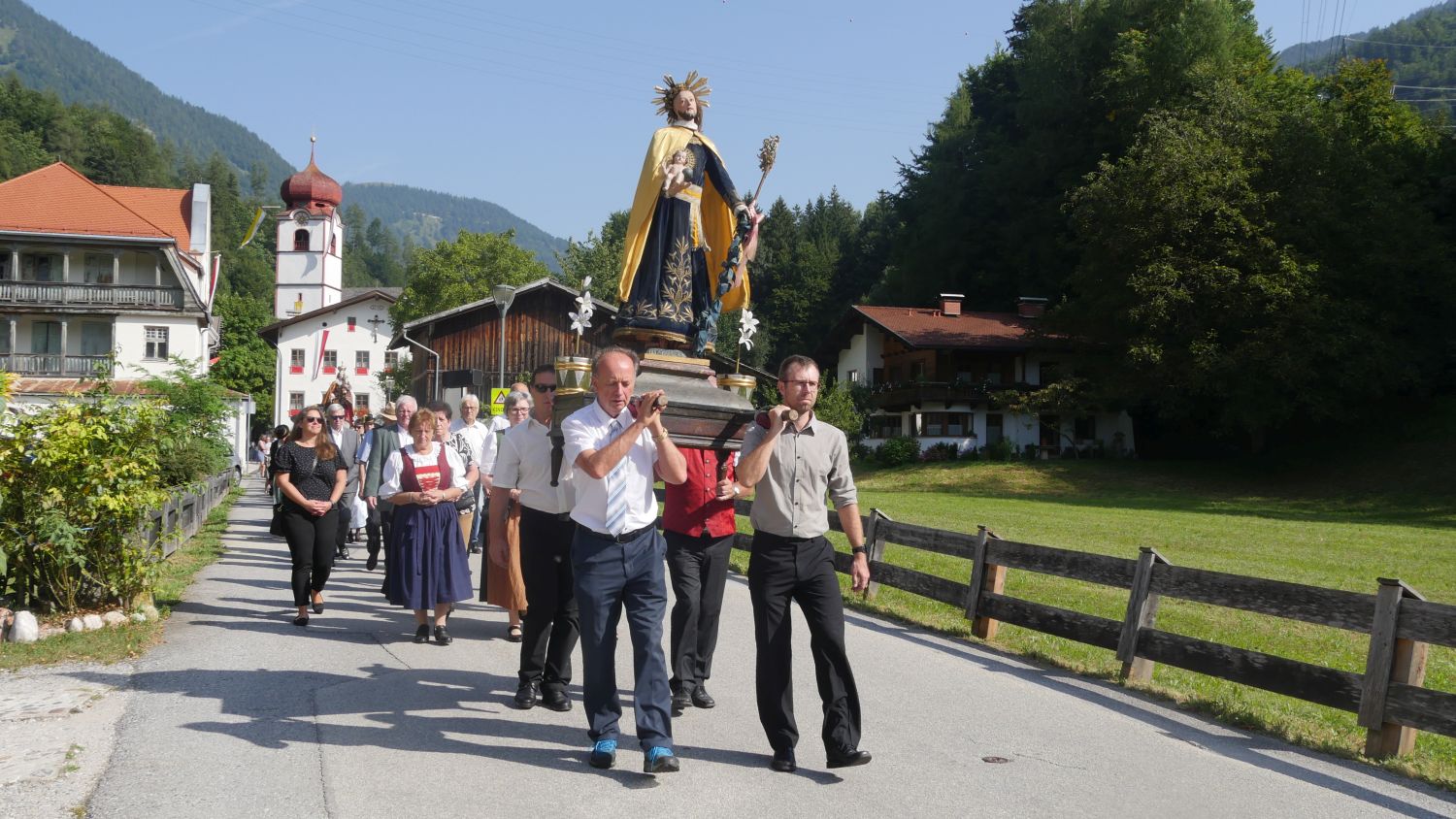 Am 15. August wurde in Mariathal das Hochfest Mariä Himmelfahrt mit der traditionellen Prozession feierlich begangen. Bei herrlichem Sommerwetter versammelten sich zahlreiche Gläubige und Traditionsvereine, um gemeinsam diesen besonderen Tag zu würdigen. Mit dabei waren auch die örtlichen Schützen, der Gesangsverein sowie die Kasettelfrauen, die in ihrer festlichen Tracht farbenfrohe Akzente setzten. Die Schützen begleiteten nicht nur den Zug, sondern erwiesen – wie seit vielen Jahren – mit kräftigen Ehrensalven Gott die Ehre. Für die musikalische Gestaltung sorgte die Bundesmusikkapelle Mariathal, deren festliche Weisen die Feierlichkeiten stimmungsvoll untermalten.