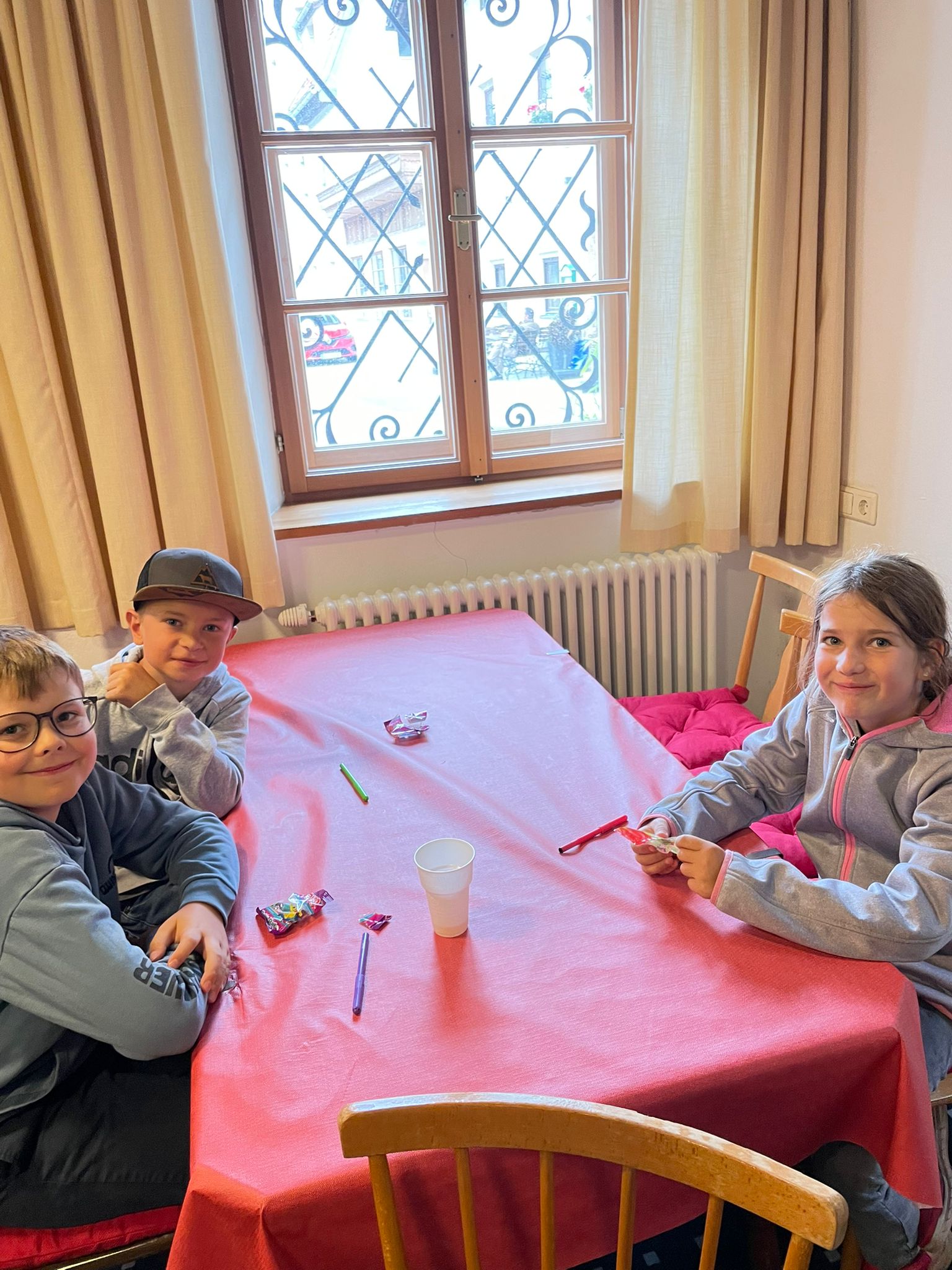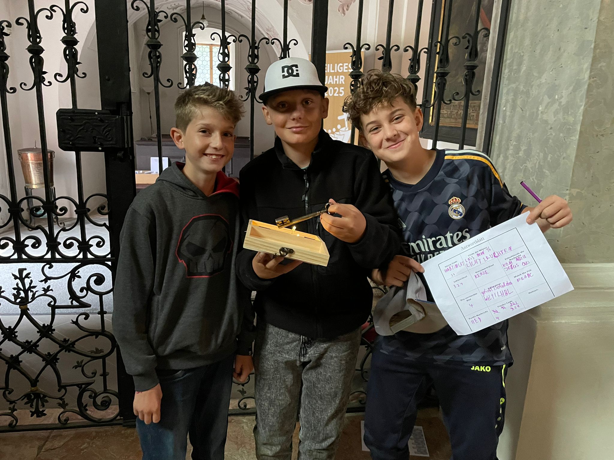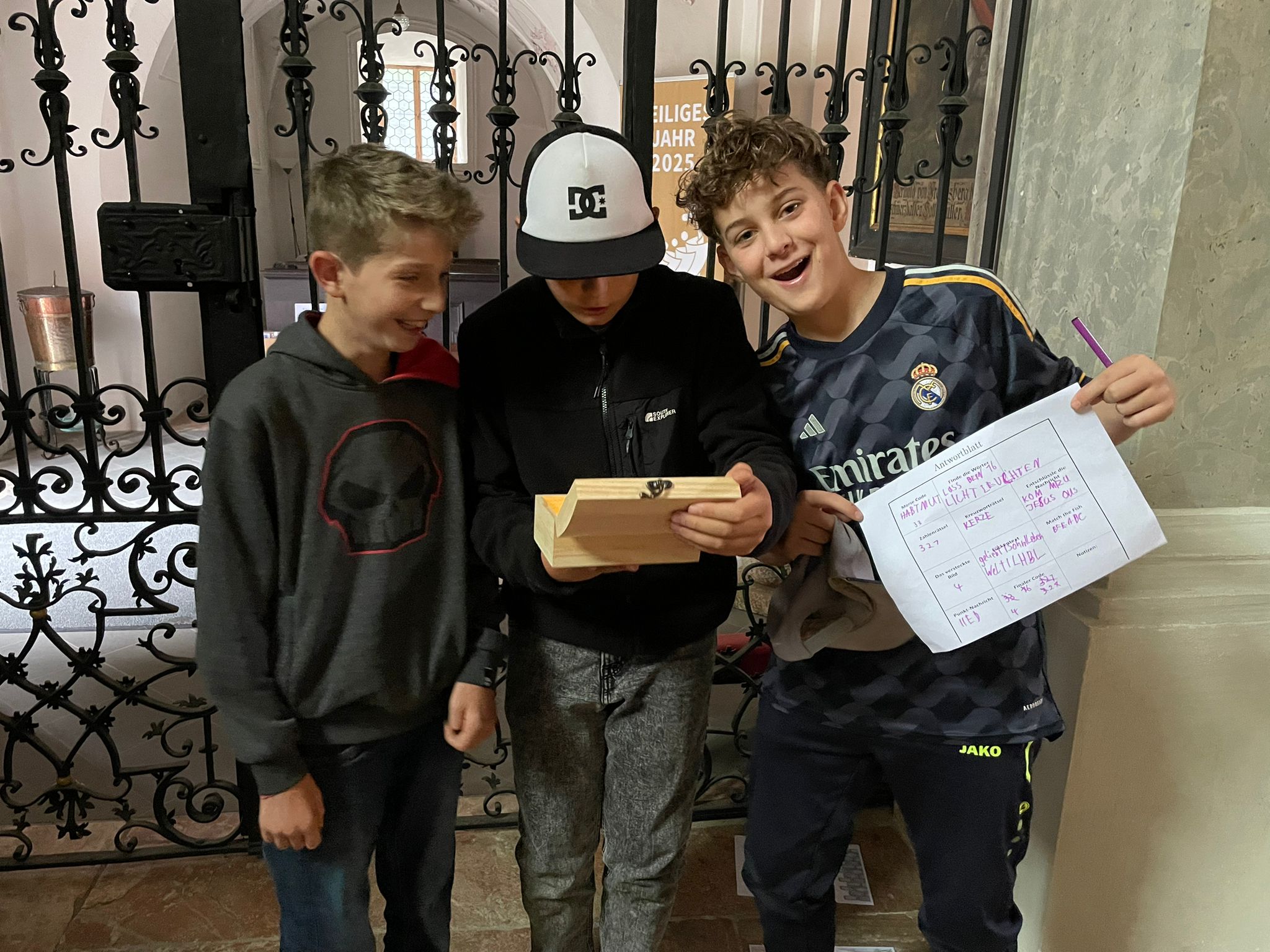 Los ging es mit einer fröhlichen Bingo-Runde, bei der sich alle schnell besser kennenlernen konnten. Anschließend verwandelte sich die Kirche in einen spannenden „Escape Room“: Die Kinder mussten gemeinsam knifflige Rätsel lösen, um den Schlüssel aus einer verschlossenen Box zu befreien – erst dann war der Weg nach draußen wieder offen!
